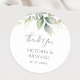 Autocollants de remerciement de mariage magnifiques avec eucalyptus aquarelle et feuilles dorées.