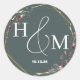 Sticker Rond Mariage Élégant Moderne Monogrammé Or Floral