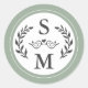 Sticker Rond Mariage élégant Monogramme moderne Sage Vert Faveu