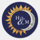 Sticker Rond Mariage Élégant Monogramme Soleil et Lune