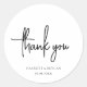 Autocollants classiques et élégants pour mariage avec un agencement simple avec "merci" dans un script moderne et vos noms et date mariage ci-dessous. La disposition épurée et minimaliste de ces autocollants de faveur en noir et blanc est idéale pour un mariage traditionnel et formel.