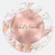 Sticker Rond Mariage en marbre blanc pailleté or rose