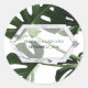 Ce design présente le Monstera tropical, également connu sous le nom de Plante suisse au fromage. Les beaux feuilles verts du Monstera complètent l'élégant centre en marbre géométrique. Design verdoyant idéal pour un mariage tropical de destination de plage. Design autocollant mariage unique avec des éléments modernes. Des invitations de mariage et d'autres articles de papeterie sont également disponibles.