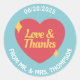 Turquoise Coeur rouge et jaune Nostalgie rétro Mariage et événements Sticker circulaire
