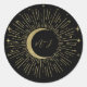Sticker Rond Mariage étoilé noir et or Soleil éclaté Lune