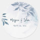 Sticker Rond Mariage Feuille Aquarelle bleu doux