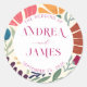 Autocollant Rond Classique de Mariage Floral Abstrait de Fleur Sauvage de Couleur Vive