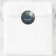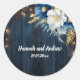 Sticker Rond Mariage Floral blanc en bois bleu rustique