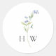 Autocollant romantique à mariage floral, avec une fine tige de fleur bleu aquarelle et un élégant monogramme. Le design botanique doux encadre magnifiquement les initiales du couple, créant un look intemporel et sophistiqué. Parfait pour les mariages de jardin, les fêtes de printemps ou tout événement à thème fleuri ou rustique.