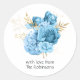 Sticker Rond Mariage floral bleu pastel et or