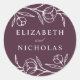 Élégants autocollants de mariage fleuris avec des fleurs blanches et des feuilles avec un arrière - plan violet foncé. Personnalisez les autocollants de mariage floral avec vos noms. Les autocollants à fleurs sont parfaits pour sceller les enveloppes mariages, les faveurs de mariage, et plus encore! Conçu pour coordonner avec notre collection de mariages floraux esquissés.