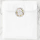 Élégante fête de mariage rustique : autocollant avec une couronne de coton d'aquarelle et des plumes de faisan sur un arrière - plan gris clair. Coordonnées avec le jeu de mariage rustique en coton.