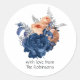 Corail - autocollants floraux à l'aquarelle en pêche rustique et bleu marine avec feuillage en faux foil argenté conçu pour être personnalisé rapidement et facilement selon les spécificités de votre événement.