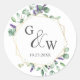 Mariage floral géométrique d'eucalyptus moderne Autocollant rond classique.