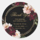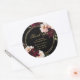 Personnalisez ces élégants étiquettes autocollants ronds pour mariage facilement et rapidement. Cliquez simplement sur le bouton Modifier à l'aide des outils de conception pour modifier le texte, modifier les polices et les couleurs des polices. Avec de belles fleurs de pivoines rousses réalistes bordeaux contre un arrière - plan noir foncé. Objets correspondants disponibles en magasin. c) Somerset Fine Paperie