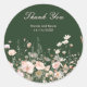 Joli mariage merci autocollant rond avec fleurs sauvages en rose et rougissant. Parfait pour un mariage de printemps ou d'été. Les mots peuvent être changés en fonction de vos propres détails ou exigences