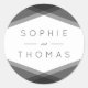 Cet autocollant mariage moderne présente un design géométrique en couches grises avec les noms du couple mariage. Personnalisez-le en remplaçant le texte de l'espace réservé. Pour plus d'options comme changer la police, sa taille et l'espacement entre les lettres cliquez sur le bouton "Personnaliser". *Veuillez noter que le filigrane Zazzle qui apparaît dans l'aperçu du zoom n'apparaîtra PAS sur le produit imprimé final. © Bois de rose et agrumes