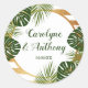 Sticker Rond Mariage Gold Foil & Green Palm Leaf Beach
