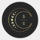 Scellez votre thème céleste avec le "Sticker Mariage Classic Round Lune d'or", contre un arrière - plan noir chic. La lune et les étoiles du croissant d'or, complétées par les initiales élégamment simples personnalisables du couple, deviennent un emblème enchanteur. Les phases de lune délicatement incorporées ajoutent une couche de symbolisme, ce qui rend ces autocollants plus que de simples sceaux décoratifs.