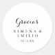 Ce sticker rond espagnol remerciement mariage faveur classique est parfait pour un mariage moderne. Le design sobre et élégant présente une typographie de script classique et sophistiquée en noir et blanc. Faites de l'autocollant votre propre étiquette en incluant vos noms, l'événement (s'il y a lieu) et la date. Ces autocollants peuvent compléter une réception de mariage, une douche nuptiale, ou tout événement!