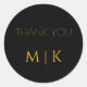Sticker Rond Mariage Merci or jaune noir Monogrammes