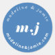 Moderne et minimaliste style bleu rétro style couple personnalisé nom, monogramme, et autocollants site mariage. Le design comprend un design en arc de cercle avec le monogramme du couple affiché en gros caractères gras.