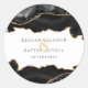 Autocollant Rond Classique de Mariage Moderne en Marbre d'Agate Noir et Or. Design de mariage contemporain élégant et sophistiqué réalisé avec du marbre d'agate noir et or. Ce design de mariage éthéré et rêveur personnalisé peut être facilement personnalisé avec vos propres détails de mariage.