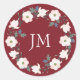 Sticker Rond Mariage Monogramme Bourgogne de couronne florale