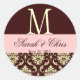 Sticker Rond Mariage Monogramme Damask Sceau d'ivoire rose Brow