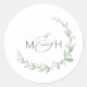 Sticker Rond Mariage monogramme du feuillage vert mauve