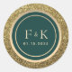Simples, modernes, élégants, parties scintillant or et vert émeraude monogramme de mariage autocollants pour enveloppes, avec initiales personnalisées et date.