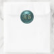 Sticker Rond Mariage Monogramme Entrelacé Deux Cœurs Sarcelle