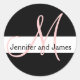 Sticker Rond Mariage Monogramme Noms initiaux Rose Blanc Noir
