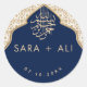 L'Autocollant rond Mariage musulman bleu Oriental présente des motifs traditionnels complexes dans une teinte bleue riche, reflétant l'élégance et l'héritage culturel d'un mariage musulman. Parfait pour ajouter une touche de sophistication classique à votre mariage merci cartes ou faveurs.