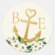 Sticker Rond Mariage nautique Gold Heart Ancre Favoriser Étique