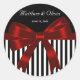 Bandes modernes en noir et blanc avec ruban rouge vif et arc mariage privilégient les étiquettes.