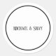 Cet autocollant est conçu comme un simple cercle noir sur un arrière - plan blanc. Les noms du couple mariage sont affichés au centre. Il s'agit d'un modèle qui peut être personnalisé pour votre mariage. Utilisez-le pour les faveurs, les enveloppes, et plus encore. Cet autocollant est conçu dans le cadre de la collection Classic Black & White Mariage Supply.