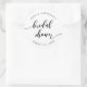Autocollant pour enterrement de vie de jeune fille avec les mots "Bridal Shower" dans un script cursif détendu en noir sur fond blanc.