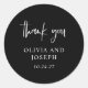 Ces autocollants modernes, simples et élégants de mariage noir foncé ou de douche nuptiale présentent un design minimaliste de texte blanc avec un script manuscrit élégant qui dit "merci".