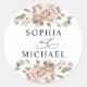 Sticker Rond Mariage Noms de Couple à l'Aquarelle Florale Rose