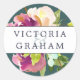 Les stickers de mariage floral chic sont une façon parfaite de finir vos enveloppes d'invitation, faveurs et plus encore. Conçus pour s'adapter à notre collection de mariages en Fleur Vibrante, les autocollants ronds présentent un bouquet de rose aquarelle et de fleurs de pivoines dans des tons luxuriants violet violet, vert rose vif, avec vos noms au centre sur un arrière - plan vert jasper tonique bijou.