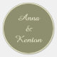 Une fine ligne d'or pâle fournit une bordure extérieure pour votre texte au centre de cet autocollant circulaire. La bordure et le texte sont placés sur un vieil arrière - plan doré plus foncé. Cet autocollant mariage correspond aux invitations et autres produits mariages de notre gamme de Mariages de fleurs d'automne.