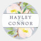 Les stickers de mariage floral chic sont une façon parfaite de finir vos enveloppes d'invitation, faveurs et plus encore. Conçus pour s'adapter à notre collection de mariages Spring Blush, les autocollants ronds présentent un bouquet de fleurs rose et pivoines d'aquarelle dans les tons pastel rose, crème et vert, avec vos noms au centre sur un arrière - plan bleu-gris en ardoise légère.