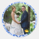 Sticker Rond Mariage Photo Merci en carreaux bleu citron