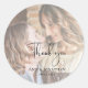 Cet autocollant de remerciement moderne ajoute une touche élégante aux faveurs de mariage. La carte comporte une photo de couple avec un effet de vellum faux et une belle typographie de script. L'aspect est sobre, sobre et élégant. Pour plus de personnalisation, n'hésitez pas à me contacter à kbasandra@gmail.com .