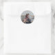 Cet élégant autocollant de mariage comporte un simple monogramme avec une photo et un script de remerciement.