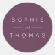 Cet autocollant mariage présente les noms du couple mariage en blanc contre une couleur violet foncé à l'arrière. Consultez d'autres articles mariages correspondants https://www.zazzle.com/collections/mauve_layered_geometric_dark_purple_wedding-119712420789591185?rf=238364477188679314&tc=rc . Personnalisez-le en remplaçant le texte de l'espace réservé. Pour plus d'options comme changer la police, sa taille et l'espacement entre les lettres cliquez sur le bouton "Personnaliser". *Veuillez noter que le filigrane Zazzle qui apparaît dans l'aperçu du zoom n'apparaîtra PAS sur le produit imprimé final. © Bois de rose et agrumes