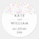 Confetti arc-en-ciel coloré décore cet autocollant élégant personnalisé avec vos noms et date spéciale. Conçu par Thisisnotme©