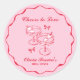 Autocollant Rond Classique Mariage Réception Rose et Rouge Dessin à la Main Rétro