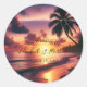 Sticker Rond Mariage romantique sur la plage de coucher de sole